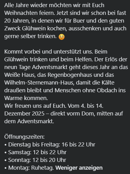 Samstag, 20. Dezember 2025 von 14 bis 19 Uhr
