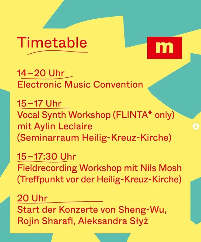 Das Ganze ist kostenlos – wenn ihr euch also nicht sicher seid, ob das was für euch ist, dann könnt ihr einfach vorbeischnuppern, Neugierige kommen auch auf ihre Kosten und für Fans und Liebhaber*innen der elektronischen und experimentellen Musik ist dieser Termin ein unbedingtes Muss! Kommt vorbei!