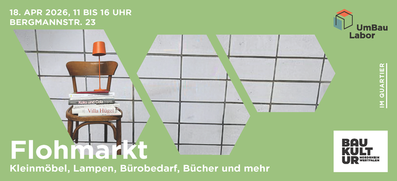 Am Samstag, den 18. April, gibt es noch einen Grund mehr, das UmBauLabor in Gelsenkirchen-Ückendorf zu besuchen. Von 11 bis 16 Uhr lädt Baukultur NRW zu einem besonderen Flohmarkt in die Bergmannstraße 23 ein.