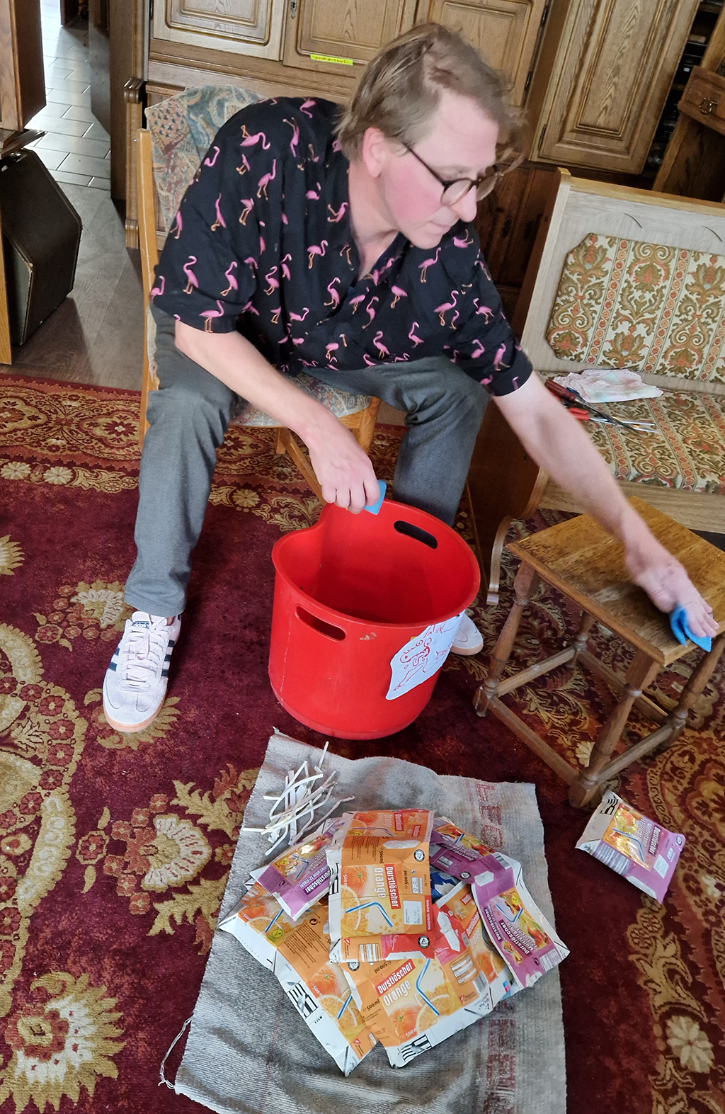 Über 50 Menschen haben an der Gelsenkirchener BaRockOper mitgewirkt: Für das Bühnenbild wurden im GeOrgel stundenlang zahlreich gesammelte Durstlöscher aufgeschnitten und gereinigt, es wurde genäht und geklebt, gewerkelt und getüftelt. Die Kostüme wurden an die Vorstellungen der Darsteller*innen angelehnt und entwickelt – schrill und spacig – genauso wie die Geschichte. Künstlerin Gordana Djukic leitete Teilnehmerinnen aus dem Mädchenzentrum beim Malen an und eine wunderbar bunte Galaxie aus Sternen und Planeten wurde erschaffen. Diese waren zuletzt auch beim „Tag des Brotes“ im Atelier in der Alten Brotfabrik zu sehen.
