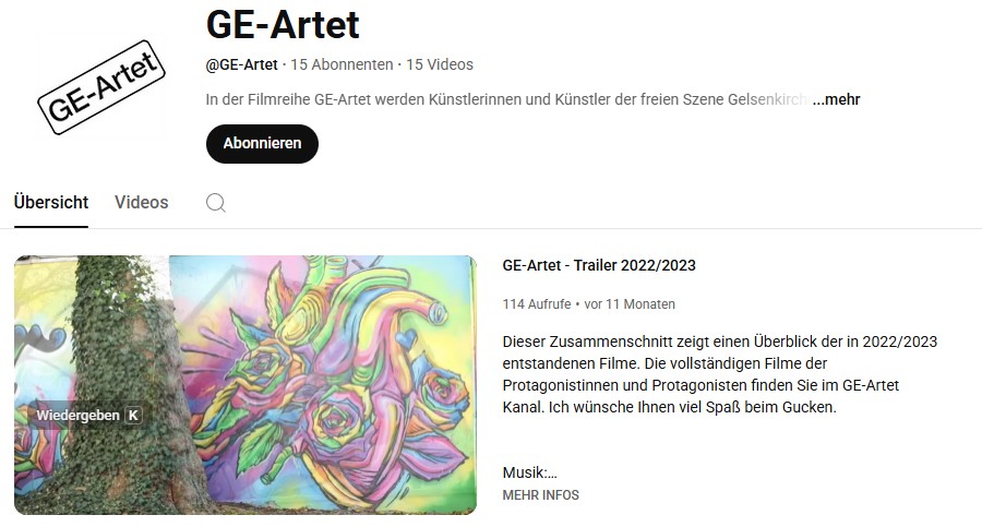 Die Kulturspur ist auch digital erlebbar: das Projekt „GE-Artet“ von Filmemacher Thomas Hoppe könnt ihr euch ganz einfach von unterwegs oder zu Hause auf YouTube ansehen. In dieser Filmreihe werden Künstler*innen der freien Szene Gelsenkirchens vorgestellt. Perfekt auch auf der Reise zwischen den Stationen! >>> Hier ansehen.