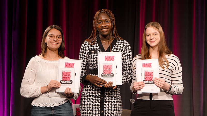 Bei der feierlichen Preisverleihung Ende September im Kulturraum „die flora“ wurden die ersten Exemplare von Oberbürgermeisterin Karin Welge überreicht. Die ersten Preisträgerinnen des neuen Jugendschreibwettbewerbs „Homestory“ sind: