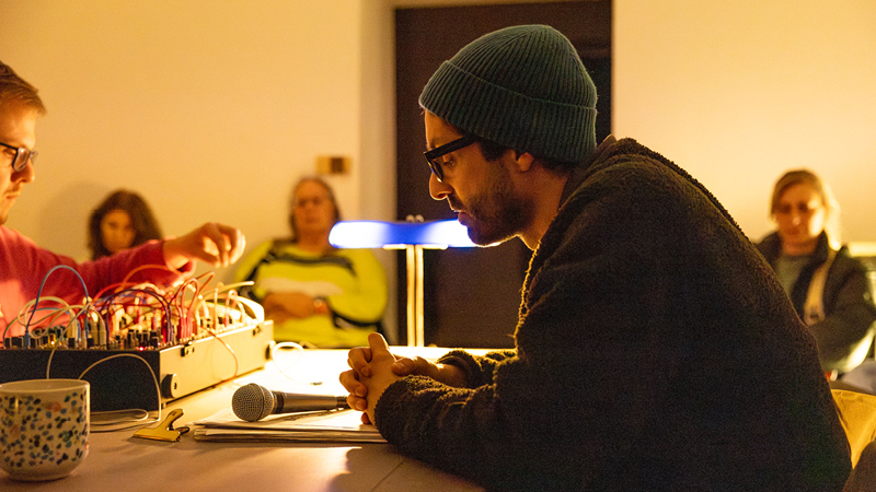 Alle drei Veranstaltungen wurden von Lukas Hermann begleitet, der mit modularen Synthesizern abstrakte Klangflächen über die Szenerie legte. Diese Soundteppiche wirkten wie ein Bindeglied zwischen Text, Baustelle und Stadt – und sorgten dafür, dass nicht nur das Publikum, sondern auch zufällige Passant*innen kurz innehielten, lauschten, dabeiblieben.