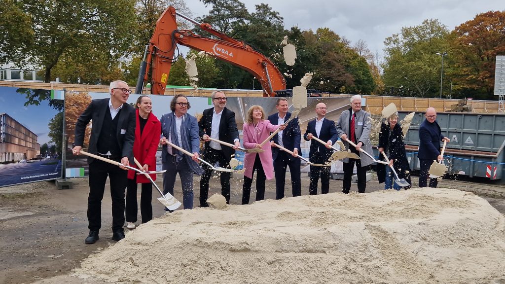 Im Anschluss ging es zum offiziellen Spatenstich. Dirigiert von Tobias Häusler durften alle Podiumsteilnehmer*innen, Dezernent*innen und weitere Beteiligte die Schüppe schwingen. Los geht’s!