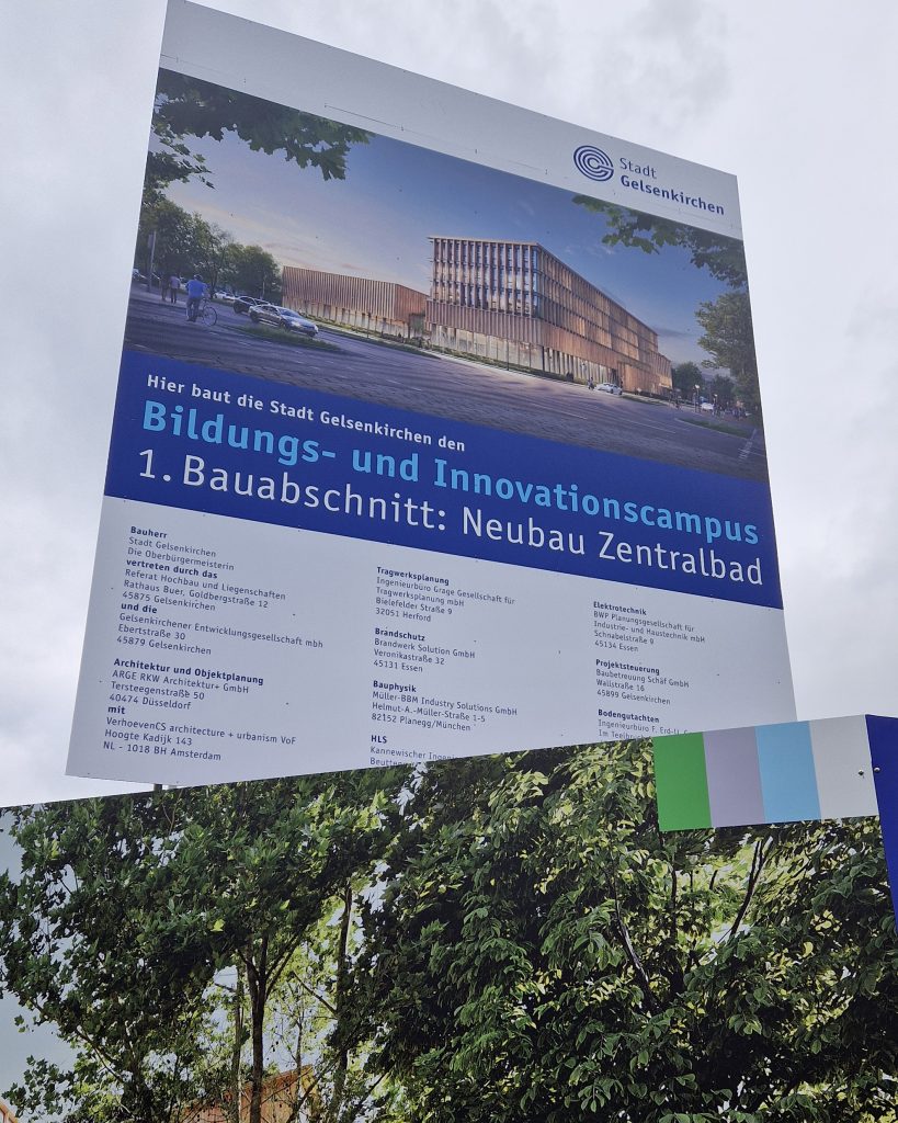Dieses Zukunftsprojekt entsteht mitten in der Stadt auf rund 18.000 Quadratmetern Fläche. Zuerst wird das neue Zentralbad gebaut – ein modernes Hallenbad, das später Teil eines großen Campus wird. Mit einem 50-Meter-Hauptbecken, das in zwei 25-Meter-Becken teilbar sein wird, einem Lehrschwimmbecken mit verstellbarem Boden und einem Becken für die Wassergewöhnung.