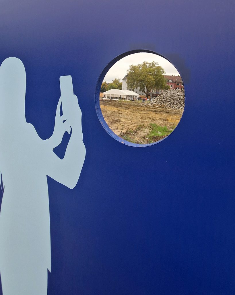 Auch der Bauzaun drumherum ist mit diesen Zukunftsansichten versehen und Gucklöcher für kleine und große Menschen ermöglichen den Blick auf die aktuellen Geschehnisse auf dem Gelände.